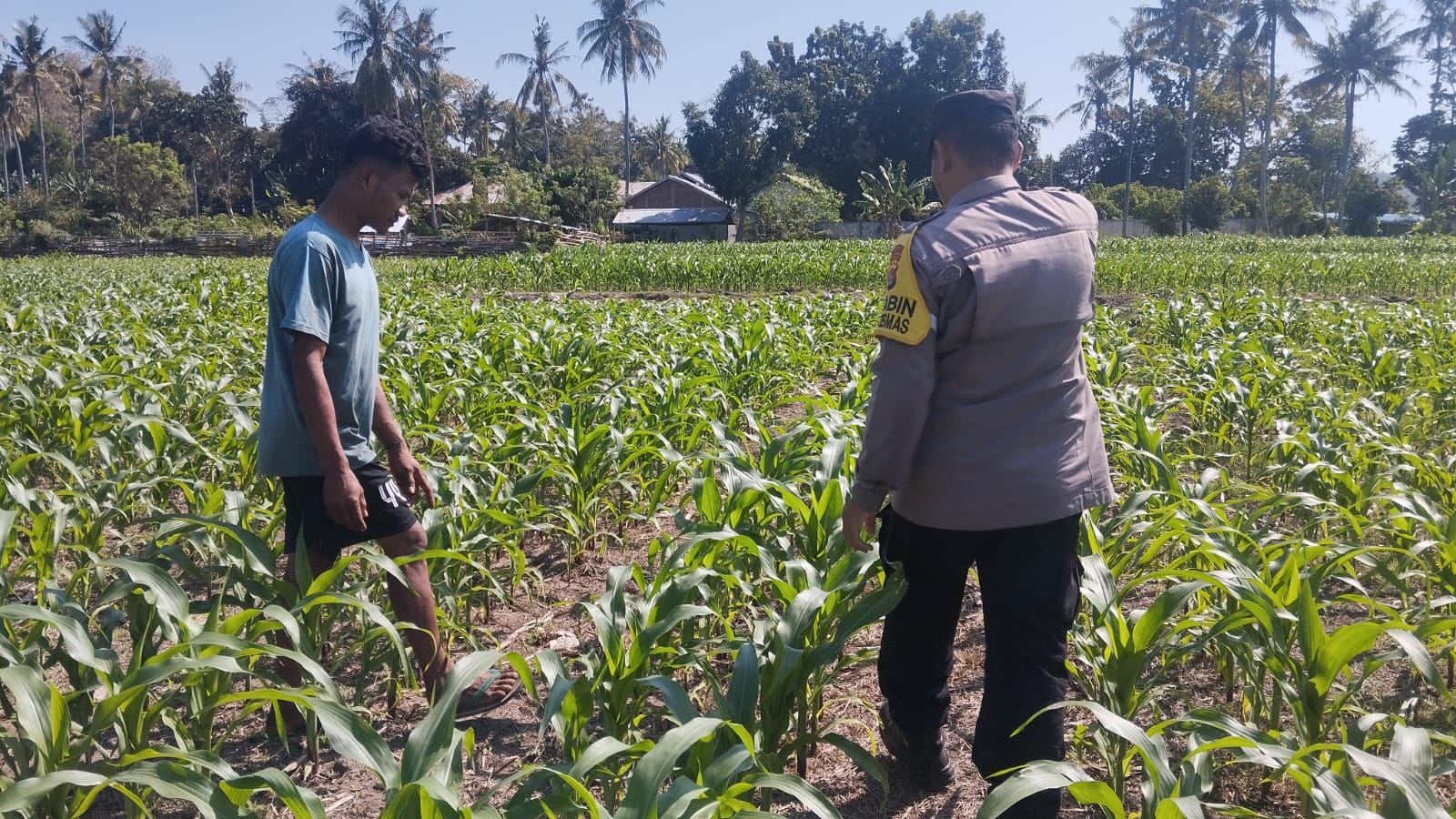 Dalam rangka mendukung program ketahanan pangan nasional menuju Indonesia Emas 2045, Bhabinkamtibmas Desa Ta’a Polsek Kempo, Bripka Ibrahim, melaksanakan kegiatan pemantauan tanaman jagung milik warga di Dusun Rasabou, Desa Ta’a, Kecamatan Kempo, Kabupaten Dompu.