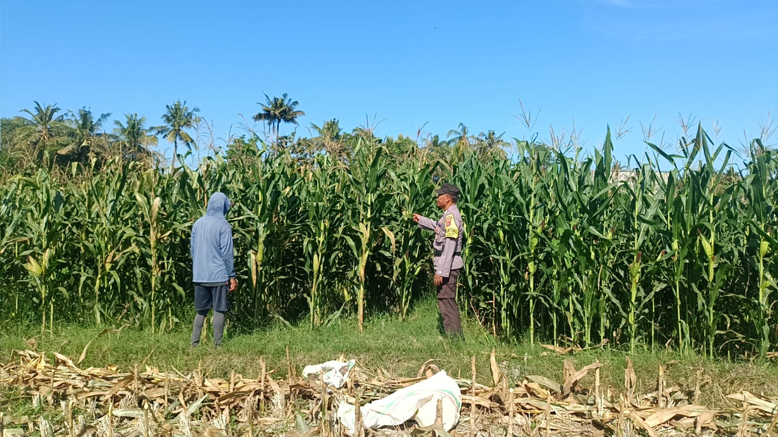 Sumbawa Besar, NTB — Bhabinkamtibmas Desa Tarusa, Bripka Heriyanto, melaksanakan kegiatan sambang dan pemantauan kondisi tanaman jagung milik petani di Sawah Uma Rarang Atas, Dusun Tarusa Bawah, Kecamatan Buer, pada Senin, 1 September 2025. Kegiatan ini dilakukan sebagai bagian dari upaya Polri untuk mendukung program ketahanan pangan nasional yang dicanangkan pemerintah.