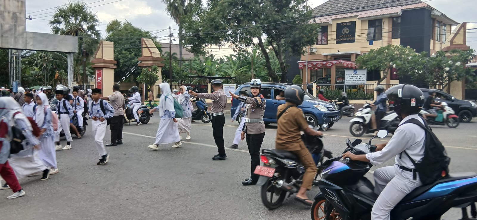 “Selain membantu kelancaran arus lalu lintas, anggota juga memberikan himbauan keselamatan berkendara kepada para pengantar siswa-siswi di sekolah, termasuk mengingatkan pengendara agar melengkapi surat-surat kendaraan dan selalu menggunakan helm SNI,” jelasnya.