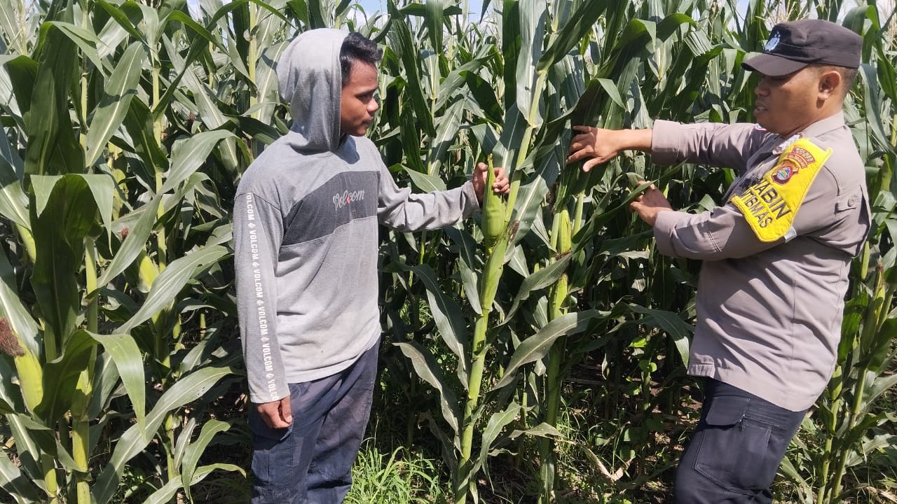 Bhabinkamtibmas Desa Ta’a Polsek Kempo, BRIPKA IBRAHIM, melakukan pemantauan lahan jagung milik warga pada Sabtu, 27 September 2025 di Dusun Baru, Desa Ta’a. Lahan seluas 30 are milik Abdul Hamid tersebut ditanami jagung varietas NK Sumo berusia 80 hari, dengan estimasi panen pertengahan Oktober 2025 sebanyak 5–6 ton.