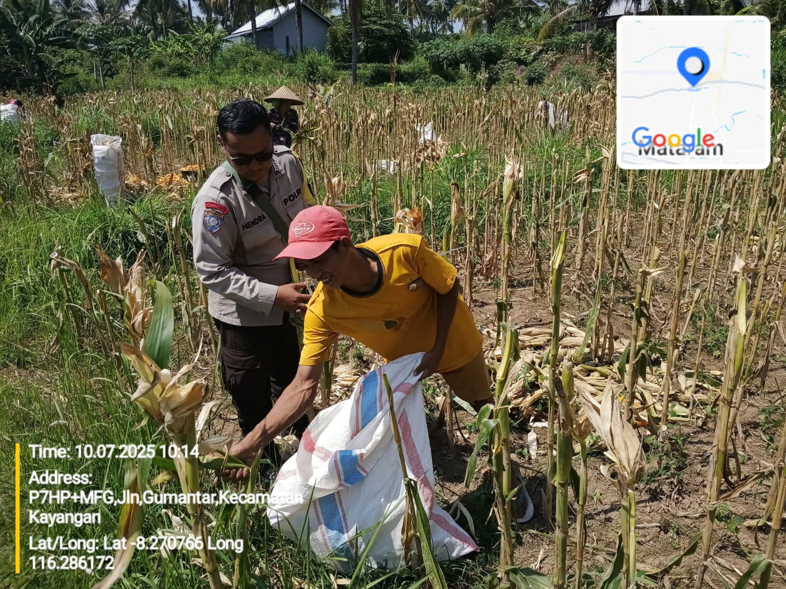 Lombok Utara – Dalam rangka mendukung program Astacita Presiden Republik Indonesia terkait ketahanan pangan nasional, Bhabinkamtibmas Desa Gumantar, Bripka Didik Hendrawan, S.H., Polsek Kayangan Polres Lombok Utara Polda NTB, melaksanakan pendampingan kegiatan panen jagung lanjutan kuartal III di lahan milik kelompok tani Sandang yang berlokasi di Dusun Boyotan Baru, Desa Gumantar, Kecamatan Kayangan, Selasa (07/10/2025).