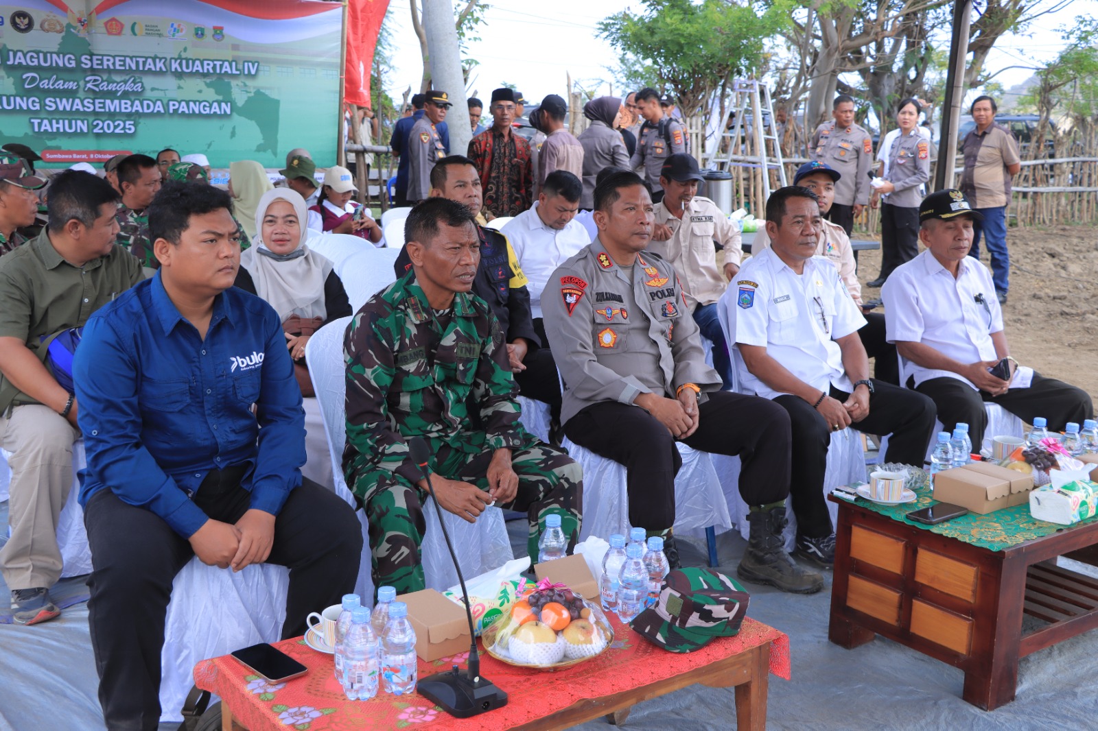 Kapolres Sumbawa Barat AKBP Zulkarnaian,S.I.K menyampaikan bahwa kegiatan penanaman jagung serentak ini merupakan bentuk dukungan nyata Polres Sumbawa Barat terhadap program pemerintah dalam mewujudkan kemandirian pangan.