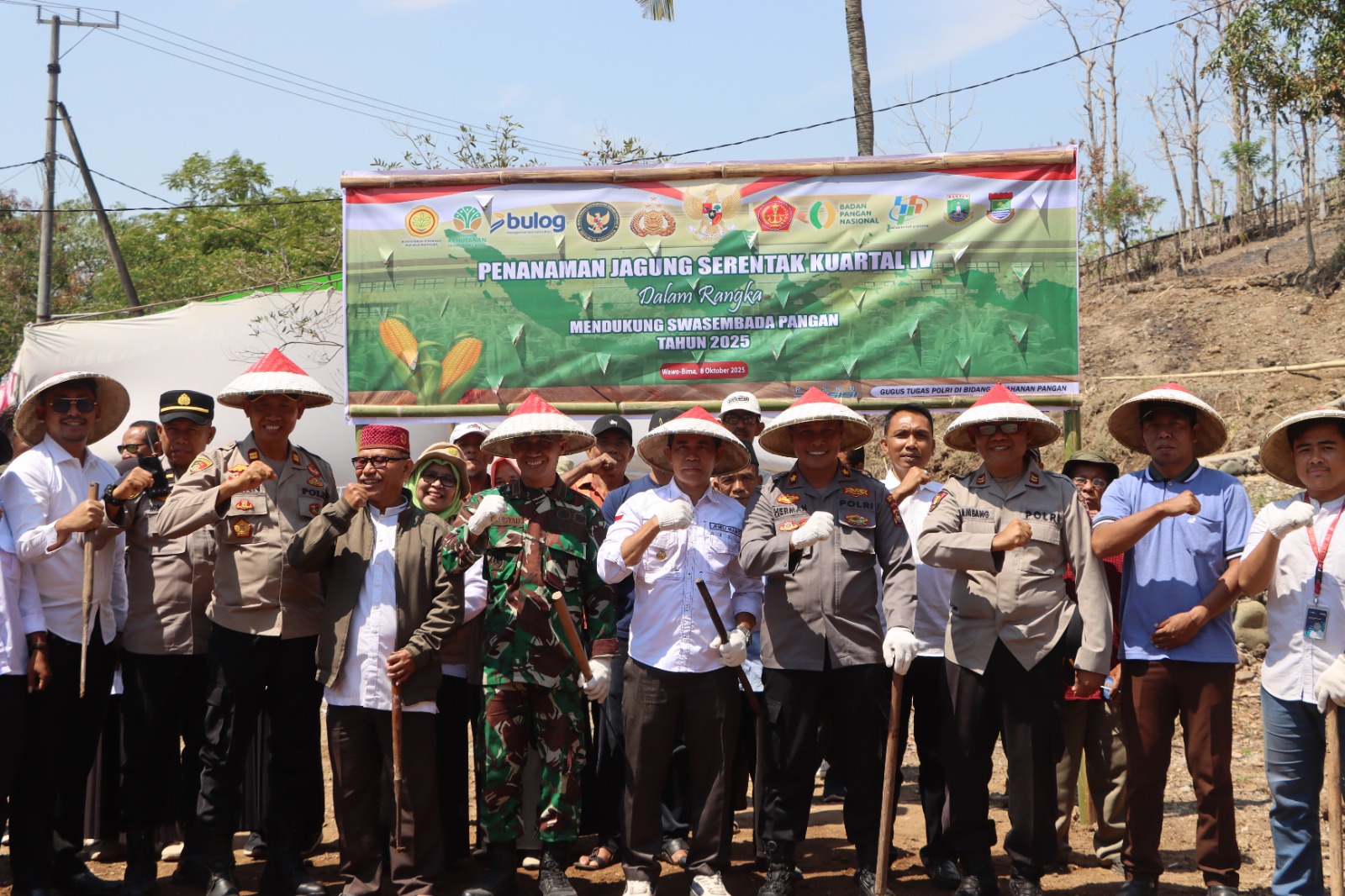 Bima, NTB (9 Oktober 2025) – Dalam rangka mendukung Program Swasembada Pangan Nasional Tahun 2025, Polres Bima Kota menggelar kegiatan Penanaman Jagung Serentak Kuartal IV yang dirangkaikan dengan Bakti Kesehatan dan Gerakan Pangan Murah. Kegiatan tersebut berlangsung di lahan Perhutani Desa Ntori, Kecamatan Wawo, Kabupaten Bima, pada Rabu (8/10/2025).