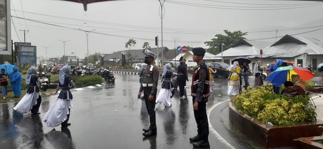 “Meskipun hujan turun, personel kami tetap siap di lapangan untuk memberikan rasa aman dan memastikan kegiatan berjalan tertib dan lancar. Antusiasme masyarakat menjadi semangat bagi anggota untuk tetap bertugas dengan penuh tanggung jawab,” ujarnya.