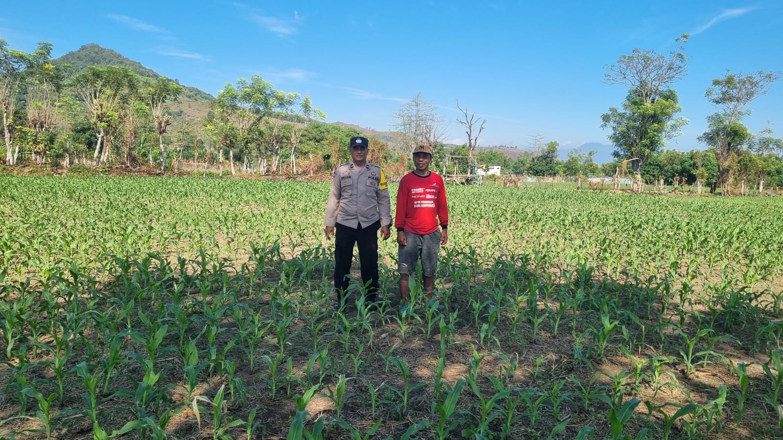 Dalam rangka mendukung Program Ketahanan Pangan Nasional menuju Indonesia Emas 2025, Bhabinkamtibmas Desa Kramat Polsek Kilo, Aipda M. Nursalam, melaksanakan kegiatan pemantauan lahan jagung milik warga di wilayah binaannya.