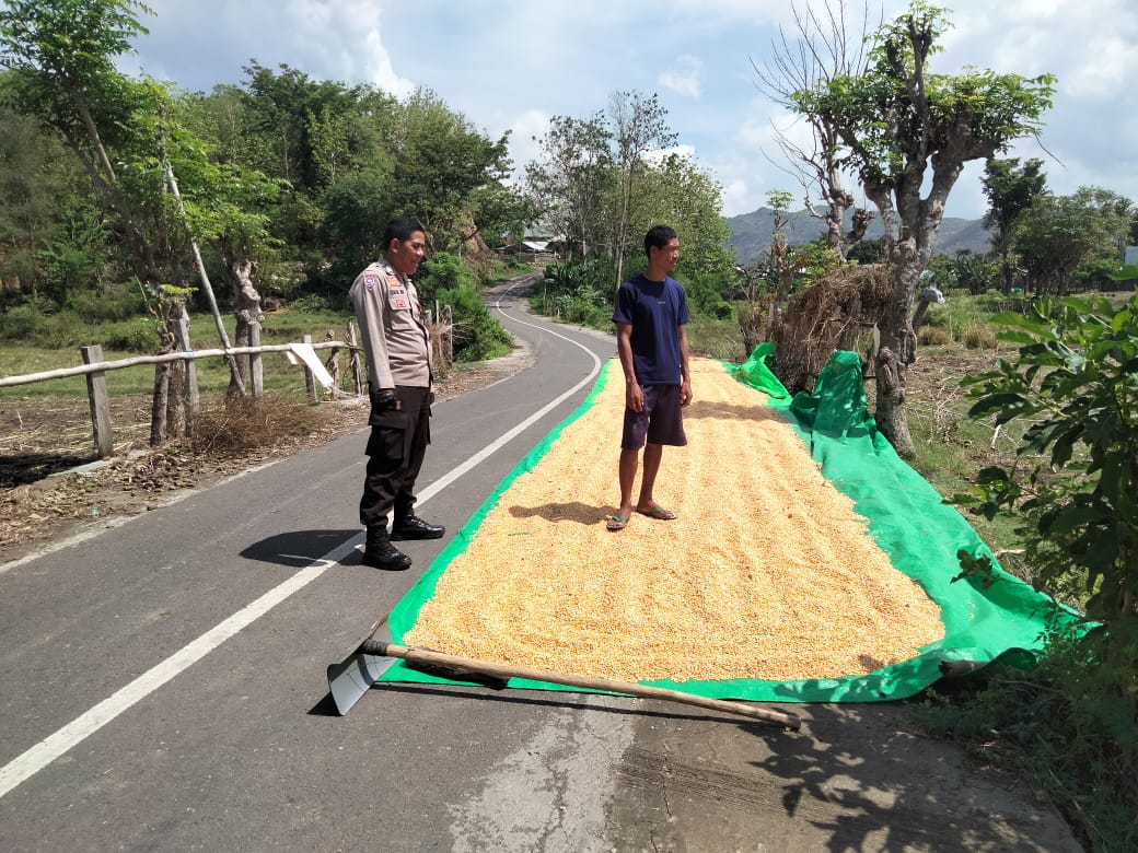 Dalam rangka mendukung program Ketahanan Pangan Nasional Menuju Indonesia Emas 2045, Bhabinkamtibmas Desa Cempi Jaya Polsek Hu’u, Bripka Ismail, melaksanakan kegiatan pemantauan terhadap warga binaannya yang tengah menjemur hasil panen jagung di So Mada Rangga, Desa Cempi Jaya, Kecamatan Hu’u, Kabupaten Dompu, pada Minggu (2/11/2025) pukul 10.00 WITA.