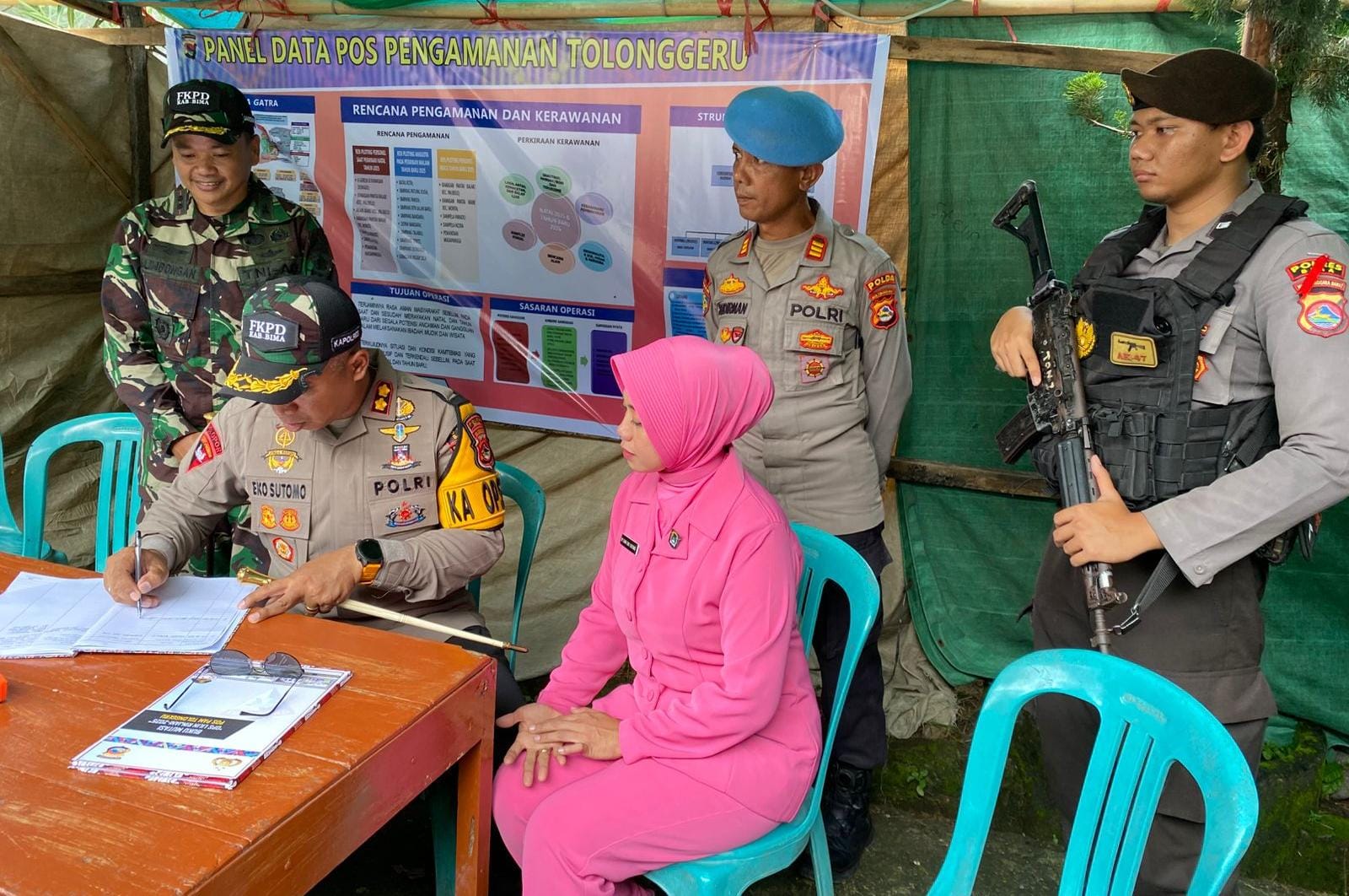 Kapolres Bima Polda NTB AKBP Eko Sutomo S.I.K.,M.I.K,. didampingi oleh Ketua Bhayangkari Cabang Bima Ny Dian Eko Sutomo melaksanakan kunjungan Pos Pam, dan Pos Yan Operasi Lilin Rinjani 2025 Nataru, Rabu (24/12/25) sekira pukul 08..00. WITA.