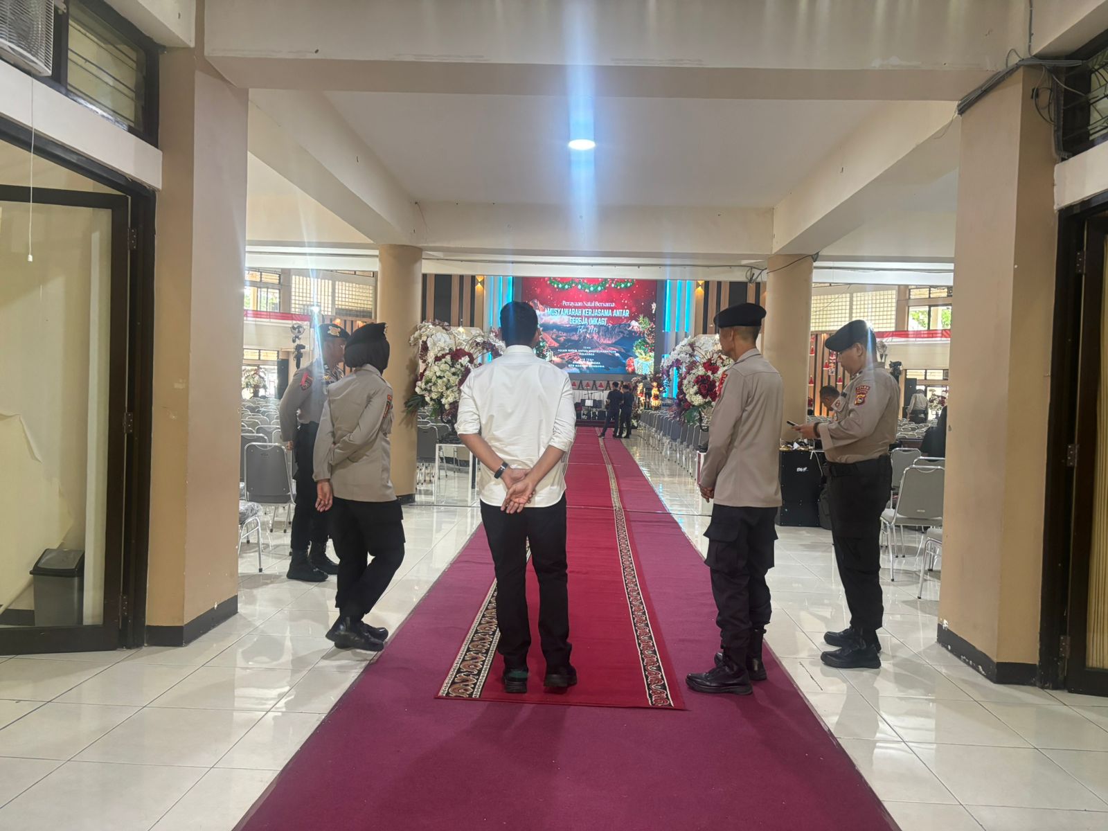 Mataram, NTB – Guna memastikan pelaksanaan ibadah Natal berjalan aman dan lancar, sejumlah personel gabungan Satgas Ops Lilin Polda NTB dan Polresta Mataram melaksanakan pengamanan kegiatan Ibadah Natal yang digelar di Auditorium Abu Bakar Universitas Mataram, Senin (29/12/2025).