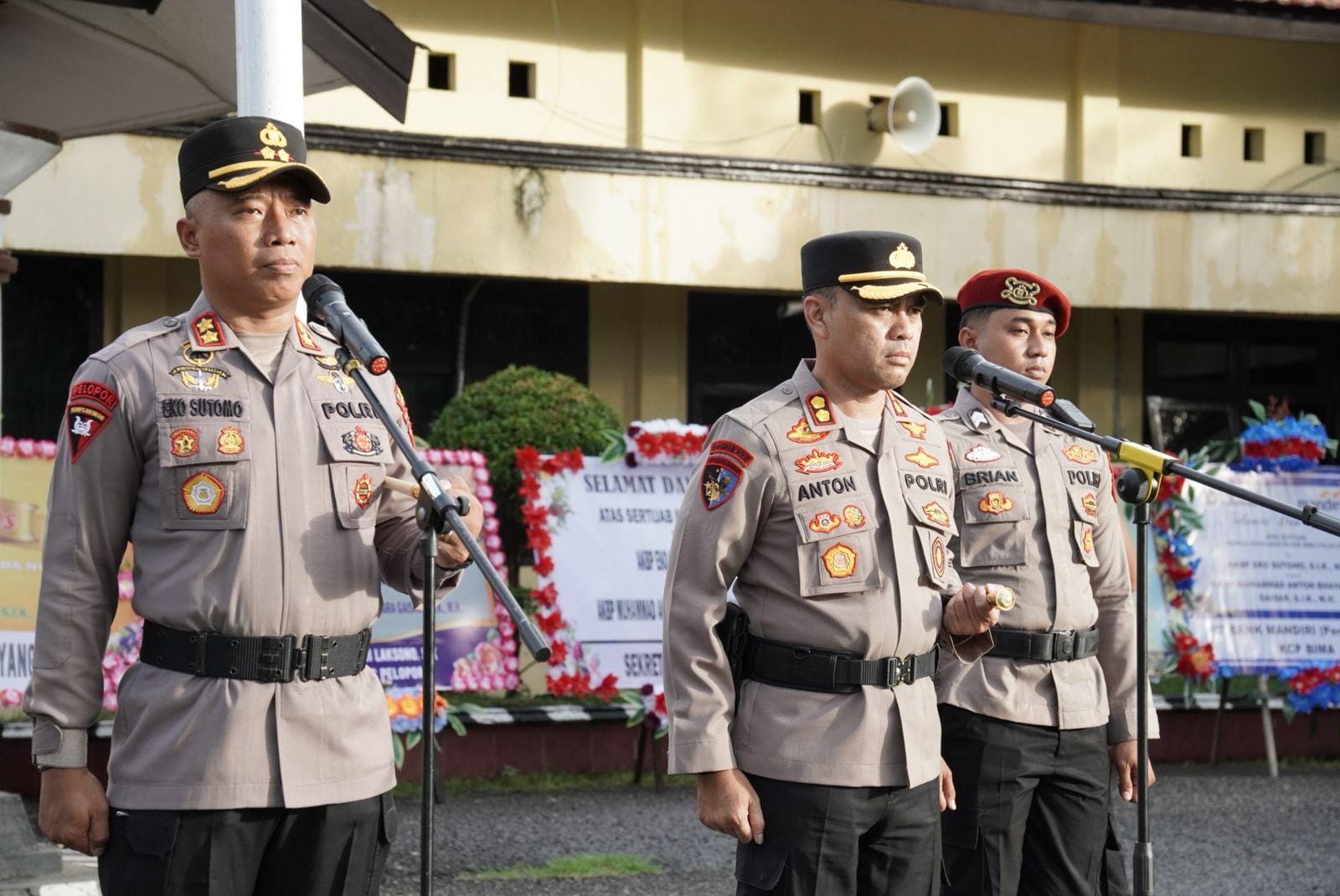Terlihat dari pintu masuk barusan rapih pasukan bersenjata lengkap dan siap menyambut kedatangan Kapolres Bima yang baru AKBP M.Anton Bhayangkara Gaisar S.I.K., M.H dari Kapolres lama AKBP Eko Sutomo S.I.K.,M.I.K.,
