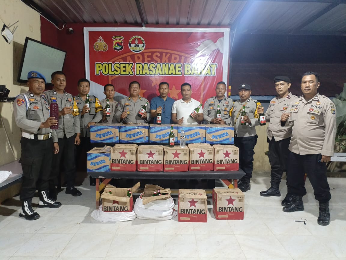 Seluruh barang bukti minuman keras yang berhasil diamankan dalam kegiatan tersebut telah dibawa dan disimpan di Mapolsek Rasanae Barat untuk proses lebih lanjut sesuai ketentuan yang berlaku.
